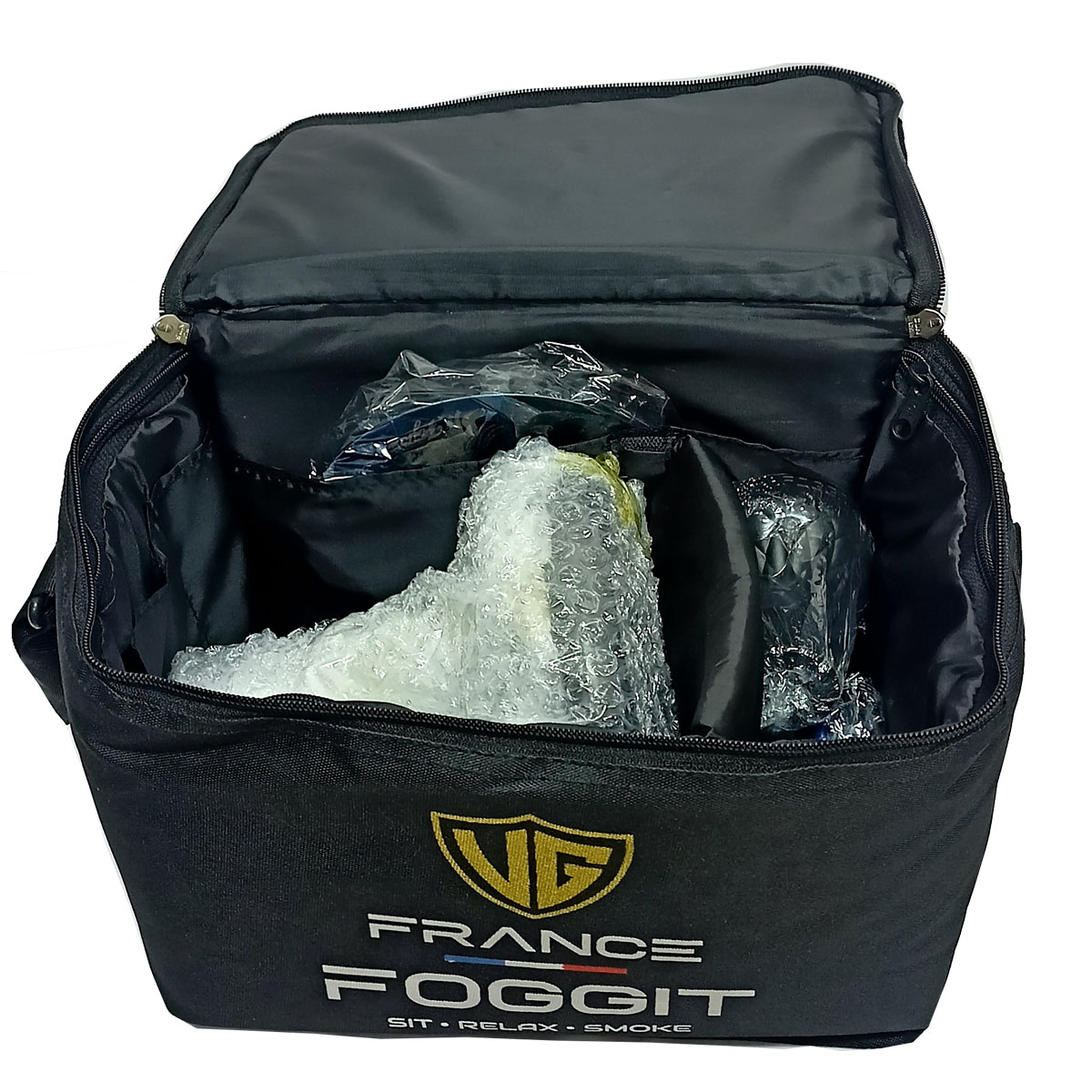 Contents : Glass Base, Silicone Chillums, Silicone Pipe, Stainless Steel Handle, Diffuser and Coal Tray, HMD, Tong and Carry Bag