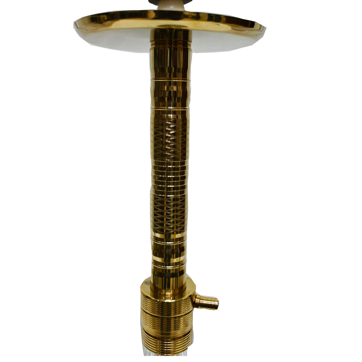 72 Cm Attack Stainless Steel Hookah Golden Stem Clear Cut Glass Base