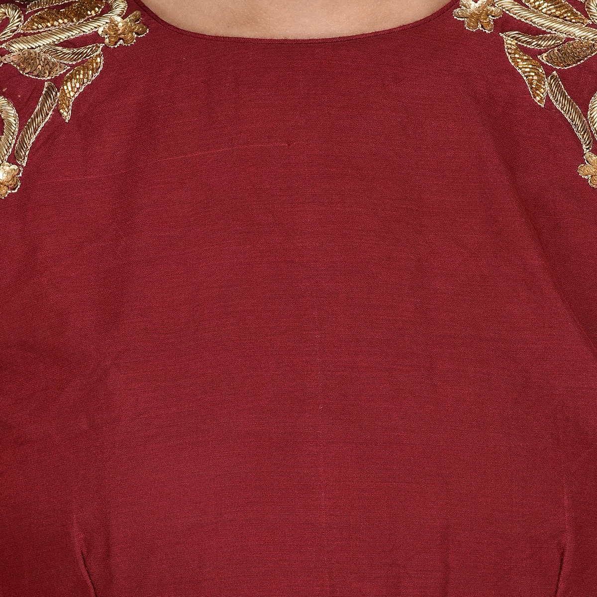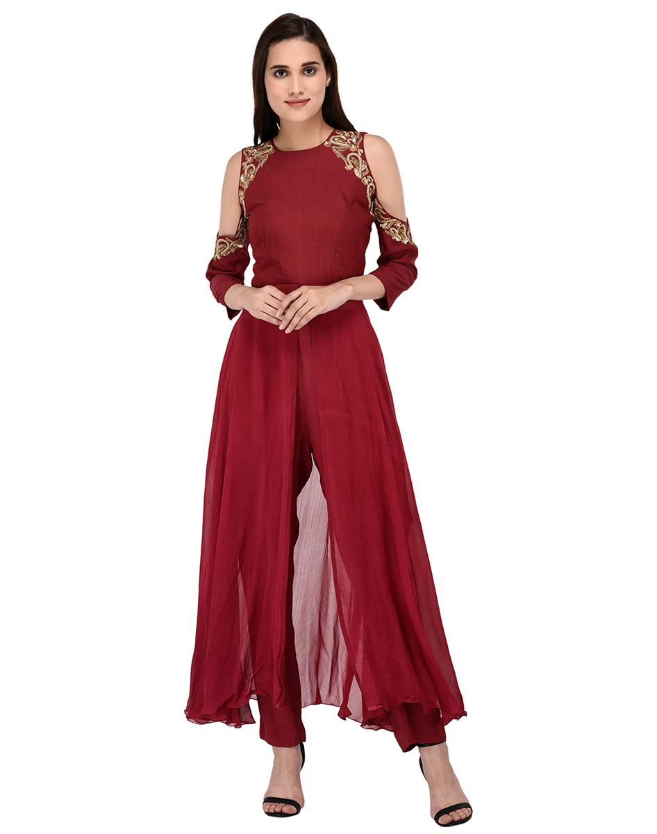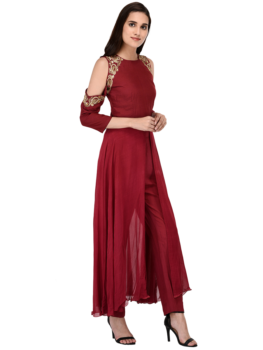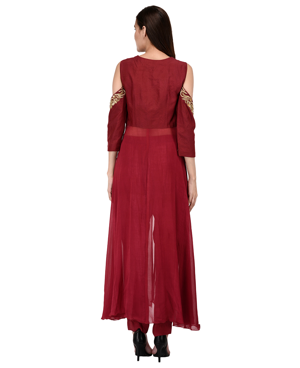 Maroon Chanderi Cold Shoulder Kurta