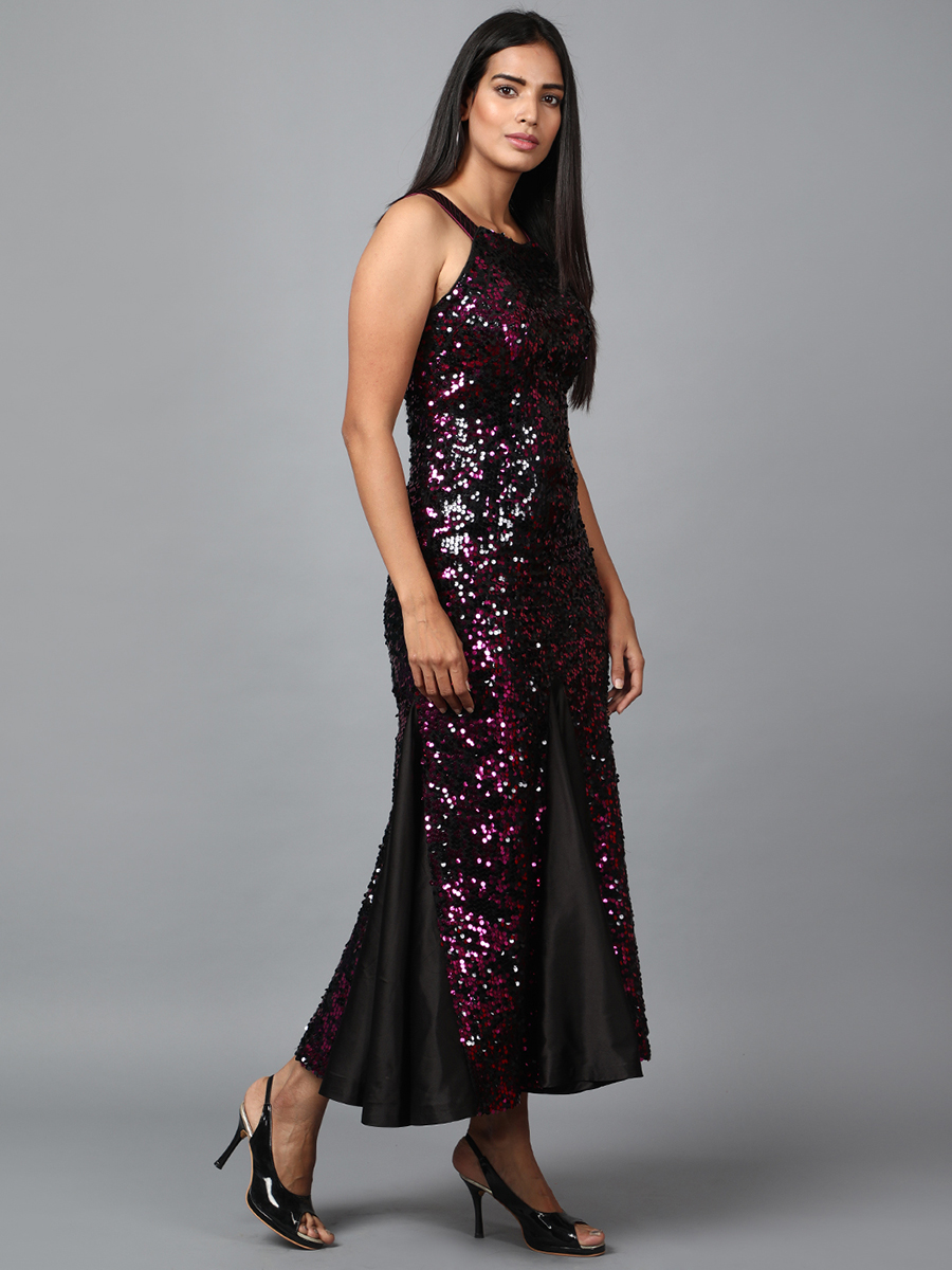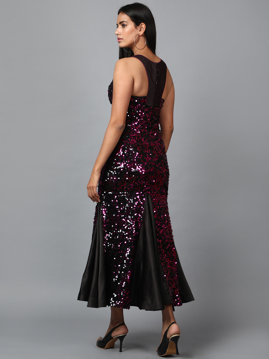 Give your wardrobe a major spin with our high-on-style gold sequins mermaid dress encrypted with lush fabrics. Pair it along with a set of high heels to turn some heads like a pro this season.