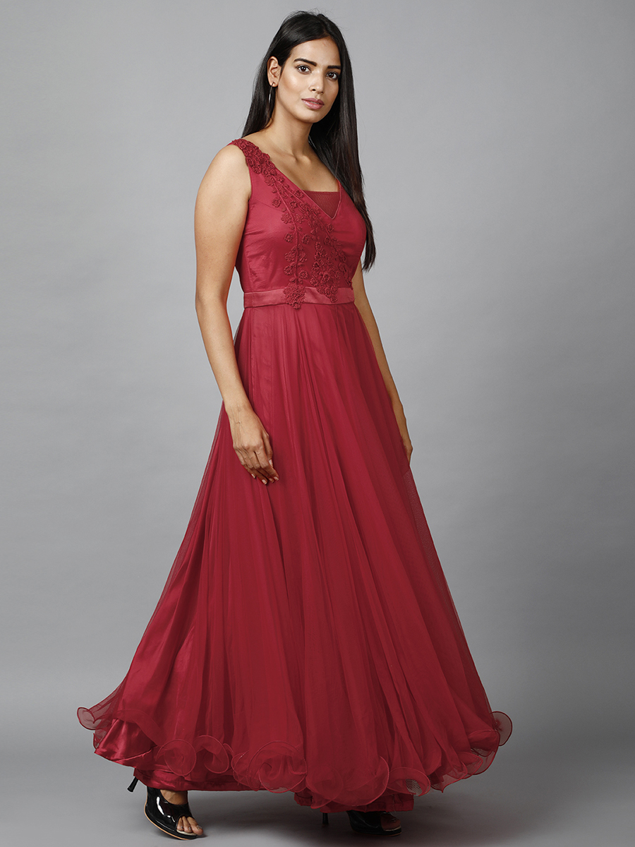 The mesmerizing embroidered net, the bright red hues, and the delicate silhouettes colluded with dreamy vogue to give your style an ultimate diva look. Our red net bridesmaid gown is perfect to left everyone around you enchanted by your vogue.