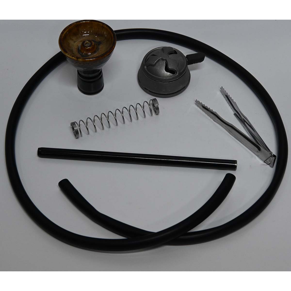 Contents : Glass Base, Ceramic Chillums, HMD, Silicone Pipe, Metal Handle, Diffuser and Coal Tray, Tong